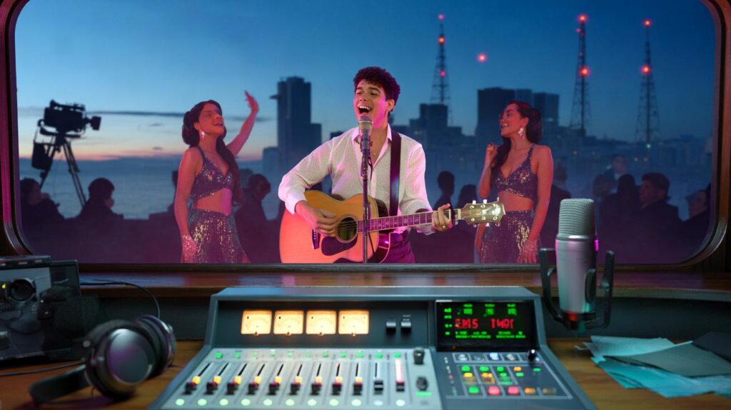 Coração Acelerado mira o bastidor do sertanejo e usa a FM para aquecer personagens, conflitos e números musicais fora da tela.