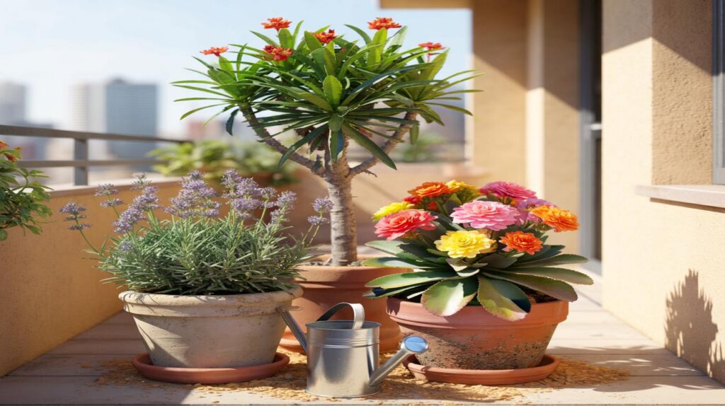 Algumas espécies resistem a sol, vento e longos intervalos entre regas. Elas mantêm cores intensas, perfume agradável e crescem bem em vaso ou canteiro, mesmo em varandas de apartamentos. Três campeãs se destacam no Brasil: flor da fortuna (Kalanchoe), lavanda e coroa-de-cristo.