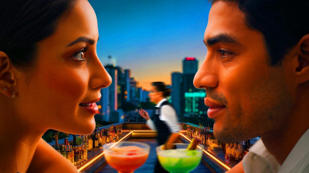 No terraço de um bar em São Paulo, duas pessoas se cruzam perto do balcão de drinks. Ela ergue o rosto por um segundo e meio, ele sustenta mais um, a música parece baixar, o garçom passa como se recuasse a cena. Há um micro sorriso, não de boca, mas de pálpebras; o queixo cede um grau, o ombro relaxa. O olhar vai dos olhos à boca e volta, como quem assinala um mapa íntimo. Ninguém disse nada. Algo se acendeu ali, de um jeito tão simples que assusta. E tão rápido que parece magia.