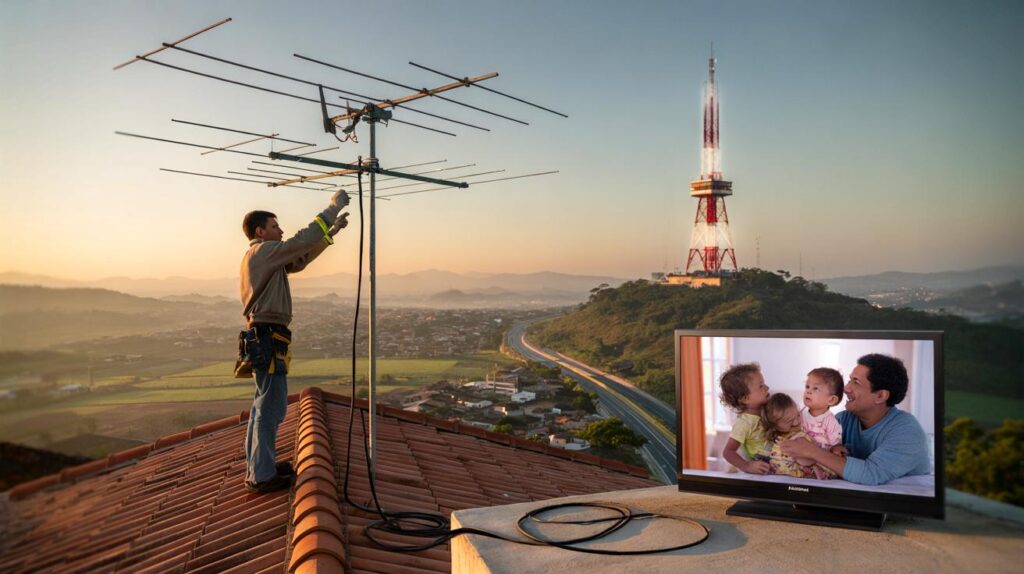 | Externa (telhado) | Ganho maior; melhor relação sinal/ruído | Fixação firme; aterramento; cabo curto e de qualidade | Bairros distantes, áreas com obstáculos ou prédios altos |