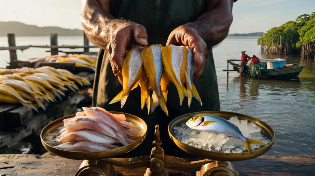 O contraste com a carne do mesmo peixe chama atenção. Enquanto o filé vale cerca de R$ 27 o quilo, a bexiga seca rende até 140 vezes mais. O ganho muda orçamentos familiares e redireciona a pesca em estuários e manguezais.